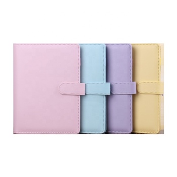 الجملة معكرون الحلوى اللون بو أغطية جلد A5 A6 الموثق دفتر 6 خواتم لولبية الأعمال مخطط العمل جدول الميزانية الموثق
